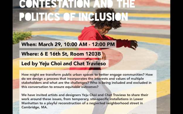 We have invited artists and designers Yeju Choi and Chat Travieso to share their work around these issues, from temporary, site-specific installations in Lower Manhattan to a playful reconstruction of a neglected neighborhood street in Cambridge, MA.