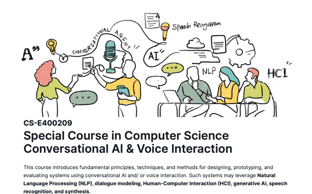 We are launching a new course on Conversational AI & Voice Interaction at Aalto University in the Department of Computer Science, co-taught with my postdocs Sunok Lee, Fedor Vitiugin, and doctoral researcher Silas Rech. Public course blog: aaltovai.wordpress.com