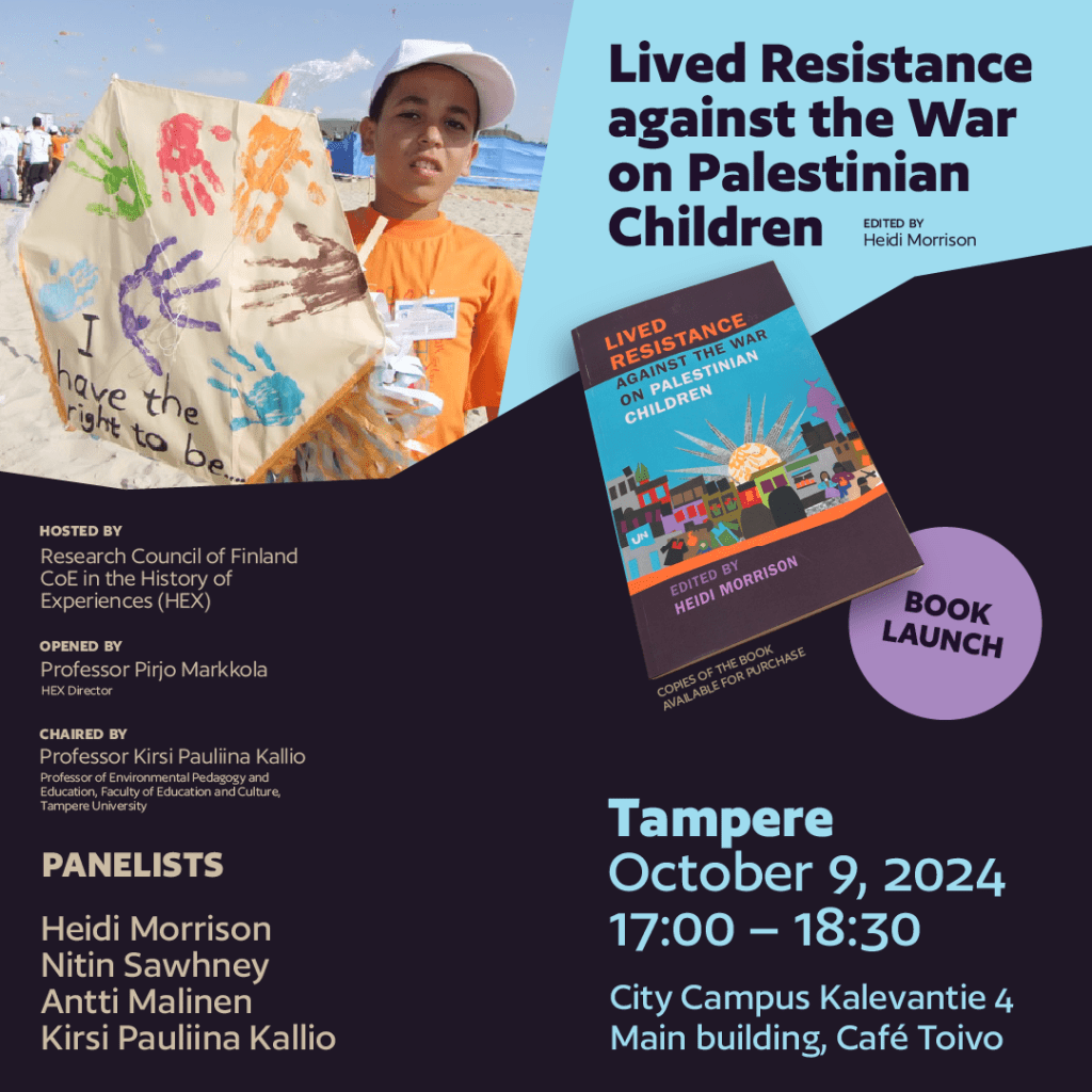 Event page: https://research.tuni.fi/hex/event/book-launch-lived-resistance-against-the-war-on-palestinian-children/
