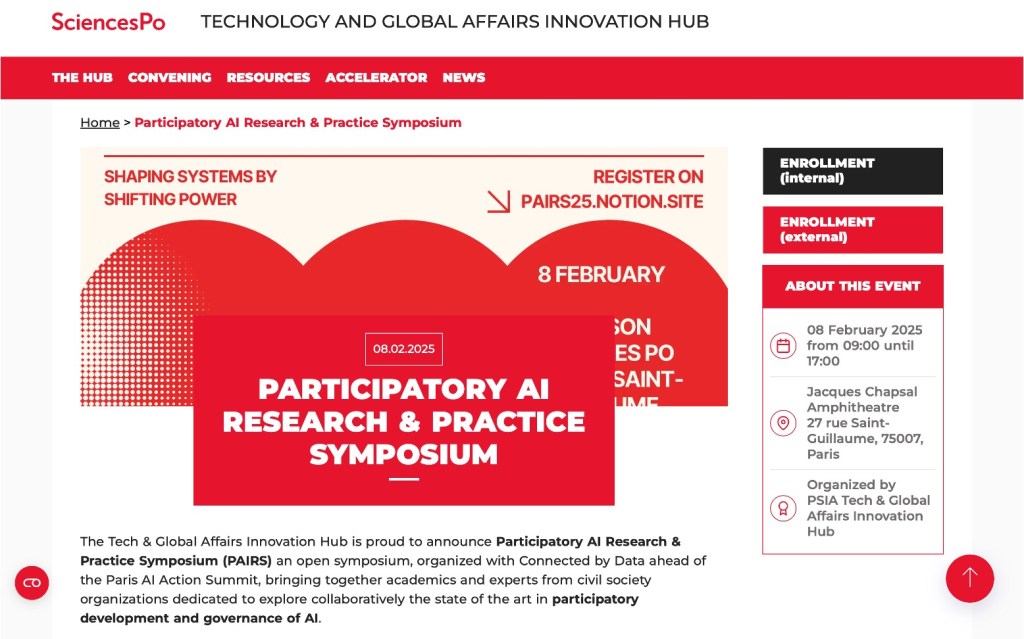Symposium on Participatory AI Research and Practice: https://www.sciencespo.fr/psia-innovation-hub/events/participatory-ai-research-and-practice-symposium/